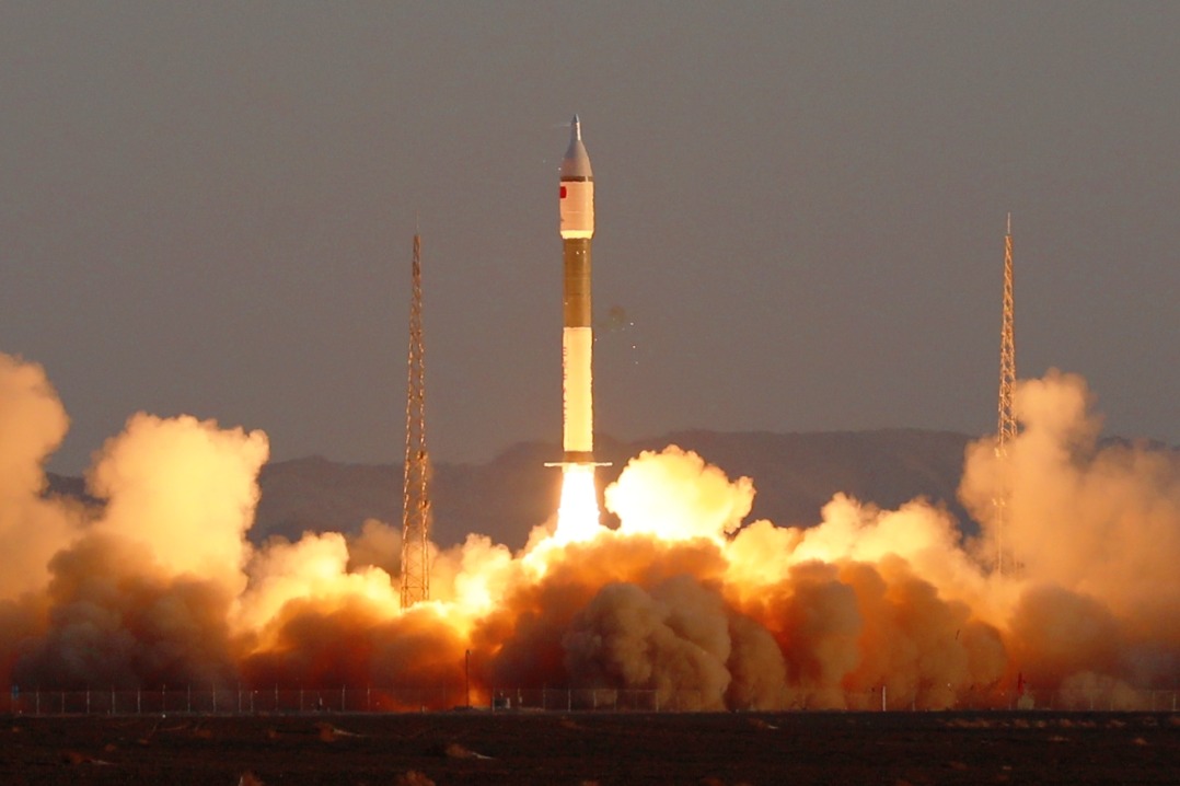 Ракетата излетя в 9:08 сутринта (пекинско време) от центъра за изстрелване на сателити Jiuquan в северозападен Китай. [Photo by Wang Jiangbo/for chinadaily.com.cn]