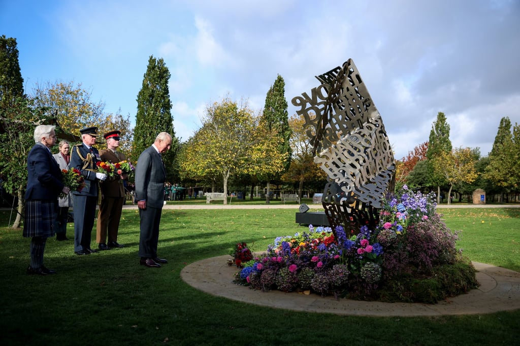 Чарлз, Чарлз, главнокомандващият на британските въоръжени сили, се присъедини от десетки действащи и бивши членове на силите при освещаването на финансирания от правителството мемориал, озаглавен Отворено писмо, в Националния мемориален дендрариум в Стафордшир.