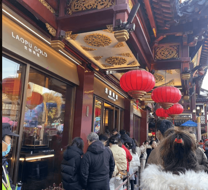 Вътре, постоянният бутик на марката показва златни бижута на цена между приблизително 5 000 и 16 000 долара за брой. Онлайн изображения на четиричасово чакане се разпространяват широко в Rednote (Xiaohongshu), китайската платформа за създаване на начин на живот и вкус. Сцената изглежда позната и все пак исторически невероятна.