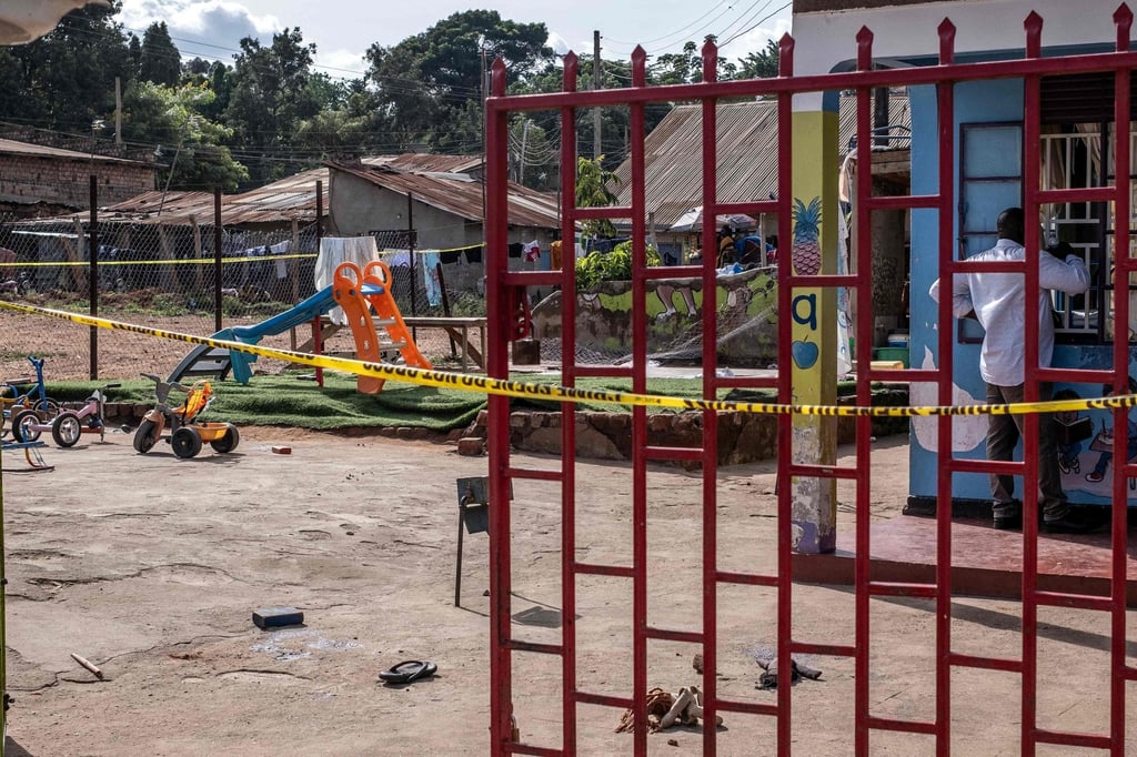 Общ изглед на отцепеното от полицията училище по програмата за ранно детско развитие Ggaba след нападение срещу деца в Кампала в четвъртък. Снимка: AFPОбщ изглед на отцепеното от полицията училище по програмата за ранно детско развитие Ggaba след нападение срещу деца в Кампала в четвъртък. Снимка: AFP