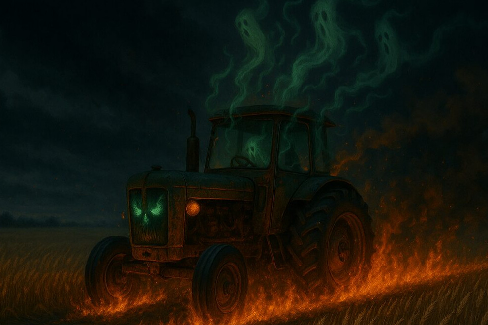 Не казваме, че не е възможно, но сцената звучи като от фантастика за обладаване от духове и как зъл дух се е вселил в димитровградски трактор, запалил го е и го е отвел в нива, която да подпали.