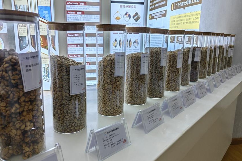 Дребнозърнесто кафе на зърна от Баошан, провинция Юнан. [Photo by Wang Xianwen/ for chinadaily.com.cn]