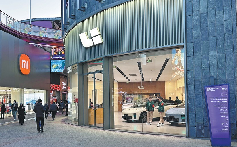 Шоурумът на Li Auto се вижда в комплекса Huaxi Live Wukesong в Пекин през март 2026 г. [Photo by Li Fusheng/chinadaily.com.cn]